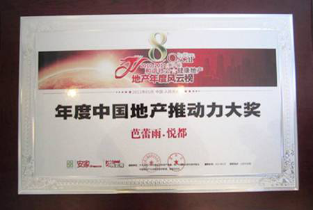 2011年1月9日,由全國工商聯(lián)房地產(chǎn)商會與《安家》雜志社聯(lián)合主辦的地產(chǎn)界盛典——第八屆“地產(chǎn)年度風(fēng)云榜”評選在北京人民大會堂舉行隆重的頒獎儀式。奧特萊斯投資管理有限公司獲得“區(qū)域經(jīng)濟(jì)推動力功勛企業(yè)”大獎,芭蕾雨•悅都項(xiàng)目憑借產(chǎn)品創(chuàng)新優(yōu)勢以及開盤當(dāng)日售罄的突出業(yè)績,榮獲“年度中國地產(chǎn)推動力大獎”。