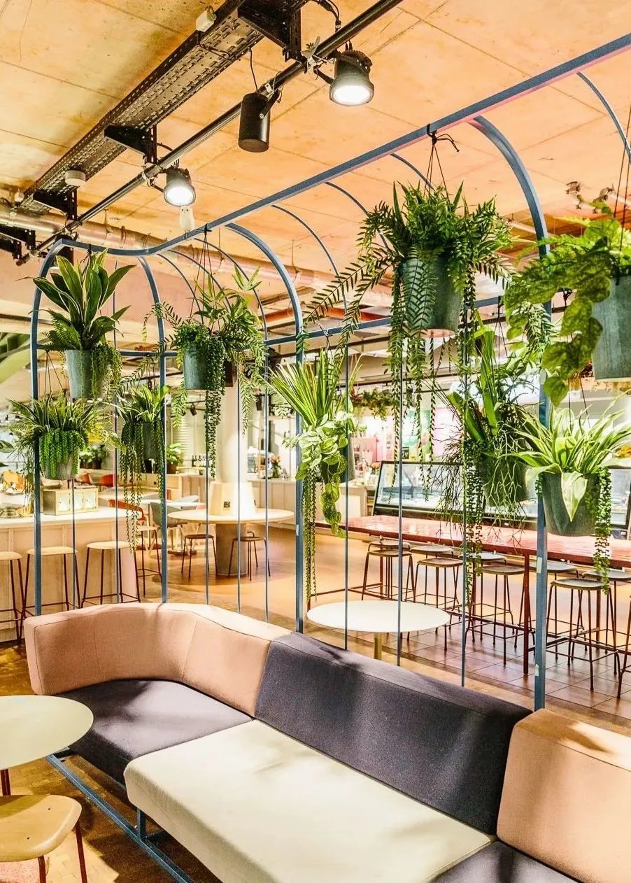 在商業(yè)的二層則設置了一個開放、通透的公共空間,同柏林潮流酒店25小時(Twenty five hours hotel)進行聯(lián)通。并以城市綠洲為設計概念,在頂層設計了一個布滿植物盆栽的七千平方公尺的天臺,供給顧客休憩社交,營造自由、無拘束的商業(yè)氛圍,與項目的整體定位相得益彰。