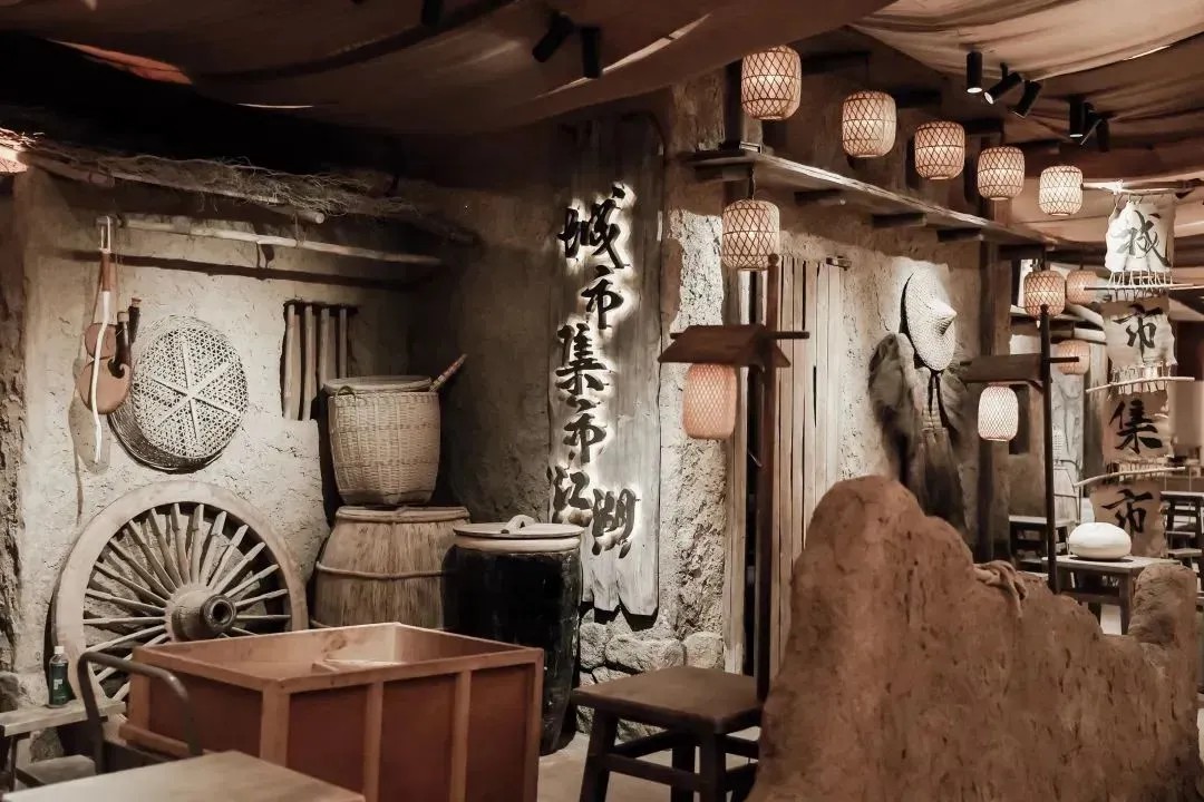 這里一草一木,一磚一瓦,基本上都還原了上世紀(jì)八十年代老長沙的建筑。在店內(nèi),有煙火氣息的老式磚樓鱗次櫛比,老舊的霓虹燈箱略帶昏暗地閃爍著,竹制的座椅被整齊的擺放。囊括了吃喝玩樂各個(gè)方面,隨便抓起一家都能勾起一堆人的青春回憶。