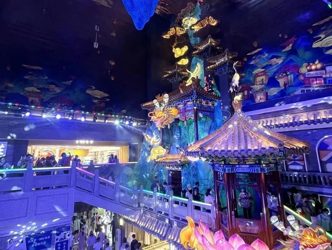 作為國內(nèi)首個(gè)“沉浸式文商旅綜合體”,“秦淮·戲院里”在秦淮文化的基礎(chǔ)上,抽取出奇市、燈山、幻戲的典型場(chǎng)景意向與文娛主題,將主題景觀、演藝內(nèi)容、商戶業(yè)態(tài)等有機(jī)融合在一起,努力為用戶帶來身臨其境的奇幻體驗(yàn)。