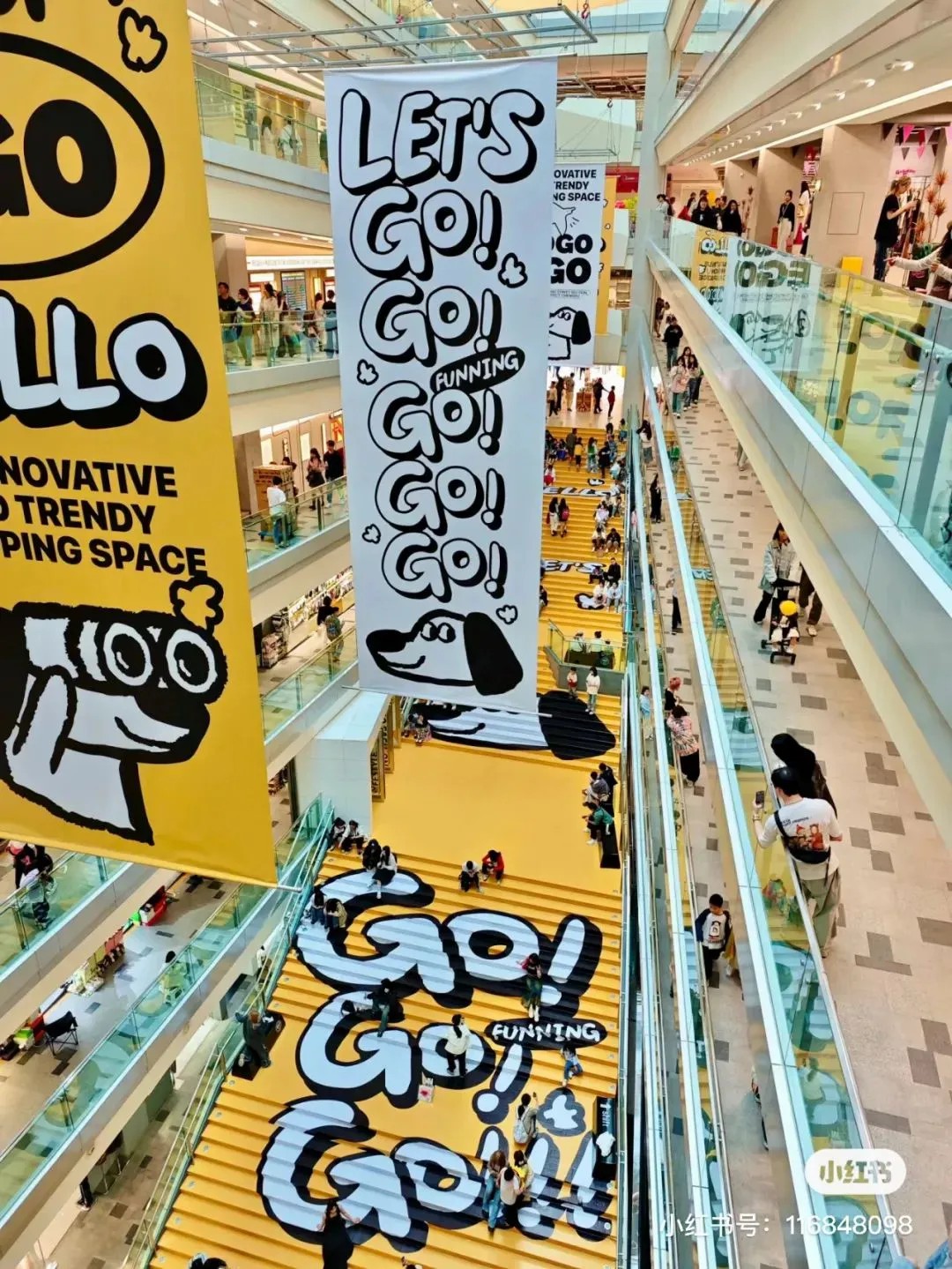 抵達(dá)商場入口,一抹鮮亮黃彩瞬間吸引目光;步入大堂,簡潔廣告語映入眼簾,色調(diào)與設(shè)計(jì)渾然統(tǒng)一,主通道沐浴在明媚黃光中,配以吉祥物GoGo萌態(tài)畫像,攝影佳作信手拈來,隨手一拍皆是風(fēng)景畫。