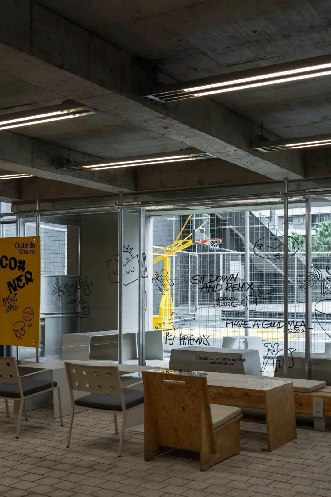 CO#NER食堂,以禁欲系冷淡風(fēng)為主旋律,設(shè)計(jì)上承襲了極致輕工業(yè)的時尚美學(xué),細(xì)膩而不失格調(diào)。其獨(dú)特的售賣模式圍繞模塊化“檔口”展開,融合POP UP快閃店概念,營造出既持續(xù)又多變的用餐氛圍,旨在為顧客解鎖無限可能的美食探索之旅。空間內(nèi),水泥原色與暖木色家具巧妙碰撞,輔以生動活潑的簡筆插畫,色彩斑斕間傳遞出溫馨舒適的放松信號,讓人在享受美食的同時,也能感受到心靈的慰藉。