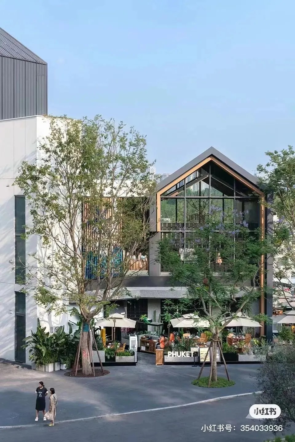 街道旁的建筑采用了大面積落地窗設(shè)計(jì),讓室外的綠意與光線無縫融入室內(nèi)空間,營造出一種開闊而明亮的氛圍,使人心曠神怡,毫無拘束之感。