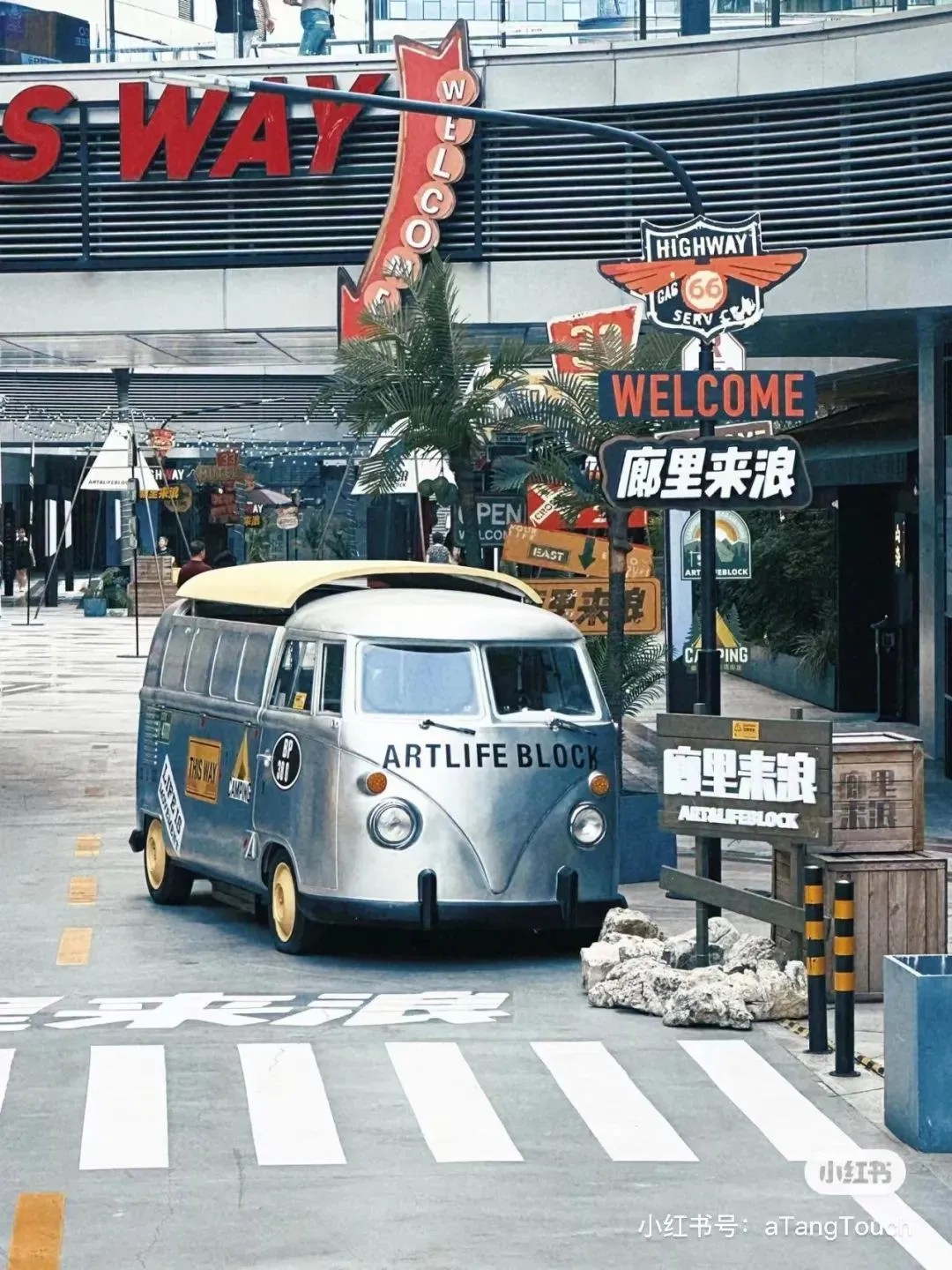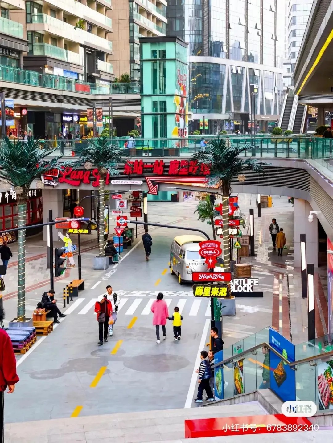 街區(qū)核心的下沉式廣場,匠心獨(dú)運(yùn),以美式公路風(fēng)情為藍(lán)本,巧妙融合異域風(fēng)韻與休閑度假氣息,不僅設(shè)計(jì)獨(dú)樹一幟,更成攝影打卡新寵,讓人仿佛穿越時空,瞬間切換場景,領(lǐng)略多元文化的魅力。此舉不僅巧妙解決了傳統(tǒng)商業(yè)下沉空間引流之困,更為其注入了勃勃生機(jī)與無限可能。