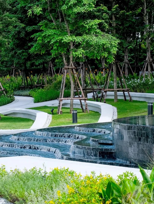 毫無疑問,可持續(xù)和綠色生活是當下城市居民最為渴求的一種生活狀態(tài)。依托來自于區(qū)位的先天優(yōu)勢,項目東西兩側(cè)毗鄰LUMPHINI公園和Benjakitti公園,加之自身打造了超過50萊的綠色開放空間(泰國常用面積測度單位,合計約8萬平方米),全部綠地連接起來形成一個占地超過700萊(合計超過百萬平方米)的巨大“綠洲”。One Bangkok所在區(qū)域可以說是曼谷重要的“綠肺”。