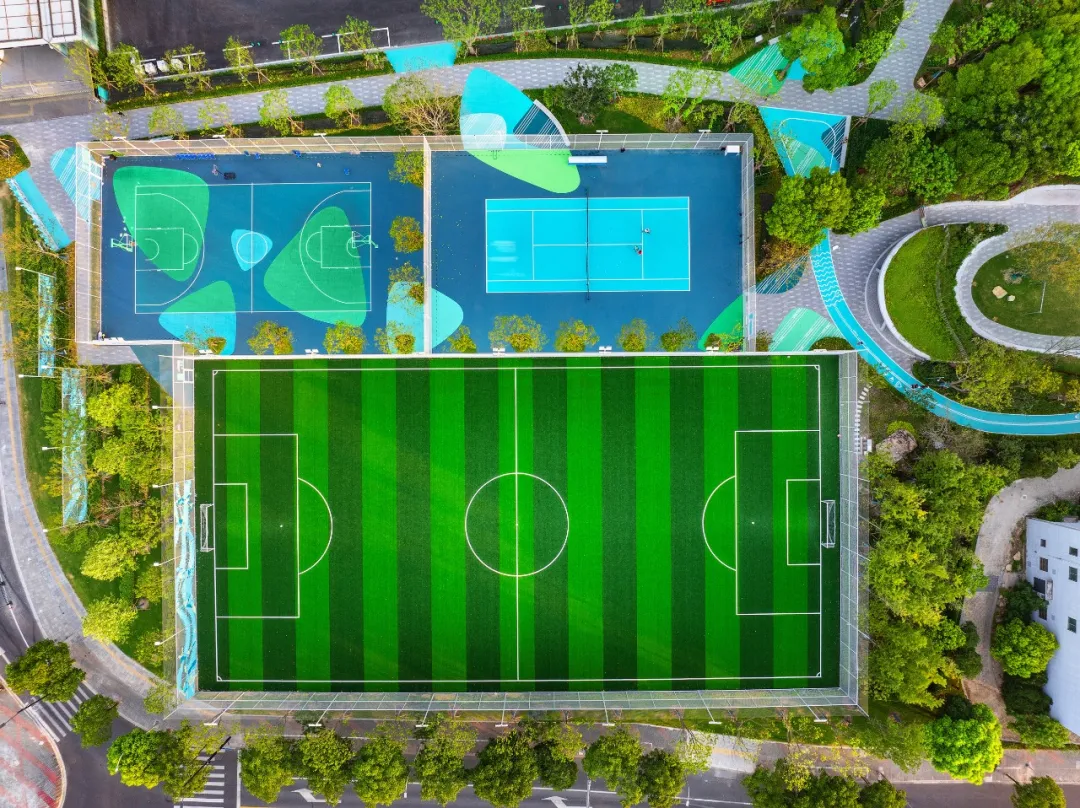 長約1公里的城市綠軸、涵蓋籃球場、足球場、網(wǎng)球場等多元運(yùn)動區(qū)域綠動聚落、約3000平方米的開闊大草坪、約1000平方米的萌芽樂園……讓你全方位接觸大自然。在這里,可以在微風(fēng)和落日余暉下嬉戲玩耍,享受城市中難得的悠閑時(shí)光。