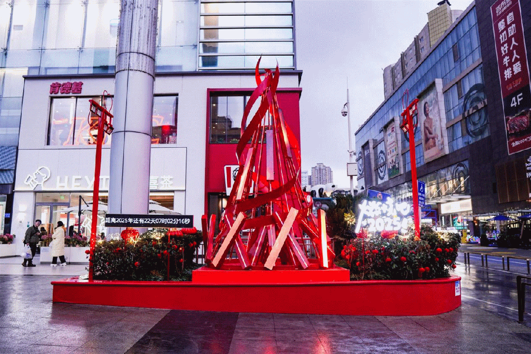 重慶天地聯(lián)手插畫藝術(shù)家李旻帶來了“新有福蛇”的藝術(shù)裝置。據(jù)了解,該靈感是結(jié)合CHINA DAILY獨(dú)有的裝飾風(fēng)格打造福字花燈,并且將“福祿壽囍財(cái)吉”的美好寓意在項(xiàng)目不同角落呈現(xiàn)。