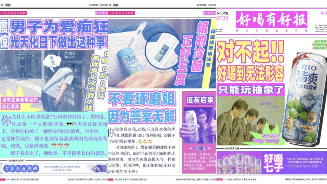 除此以外,RIO微醺化身成戲精上線的「好喝有好報」主題活動,在畫風設計、產品口味描述與故事性上整花活兒,做到了內容有料有梗,實現了用戶與品牌玩在一起。