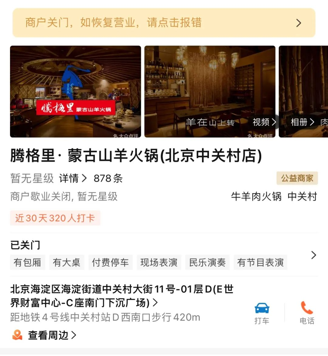據(jù)大眾點評最新信息顯示,西貝餐飲集團在北京中關村高調(diào)推出的子品牌“騰格里蒙古山羊火鍋”全國首店已歇業(yè)關閉。這家曾以現(xiàn)熬羊骨湯、內(nèi)蒙古二狼山白絨山羊肉為主打賣點,開業(yè)首月即登頂區(qū)域火鍋熱門榜的餐廳,在運營不足半年黯然退場。
